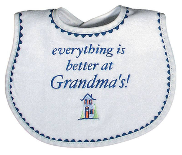 One of our longtime selling Grandma bibs, this embroidered bib is right on: ÌÕeverything is better at Grandmḁs.ÌÒ So true, isn̥t it? No gets to spoil a baby boy like...