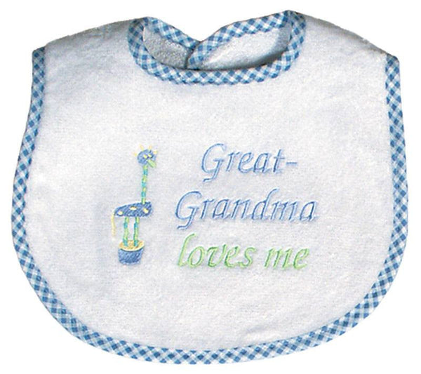 Raindrops Great-Grandma Loves Me Embroidered Bib, Blue