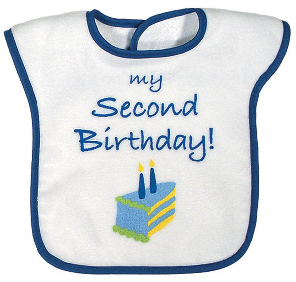 Let̥s not forget about the second birthday! Raindrops created this large screen printed, ÌÕmy Second BirthdayÌÒ bib for all those parties and pictures that will be taken of your 2 year old and a lot of messy cake! This bib is made in the best 100% cotton velour terry and it will absorb all the messes your little one can create. There is no polyester in any of our velour terry, only cotton, and because of this, this top quality bib will absorb all liquids and continue to wear and wash beautifully. The royal binding makes it a boy bib but there is a strawberry version, too. Raindrops has been manufacturing top quality, unique baby garments in the USA, since 1936.