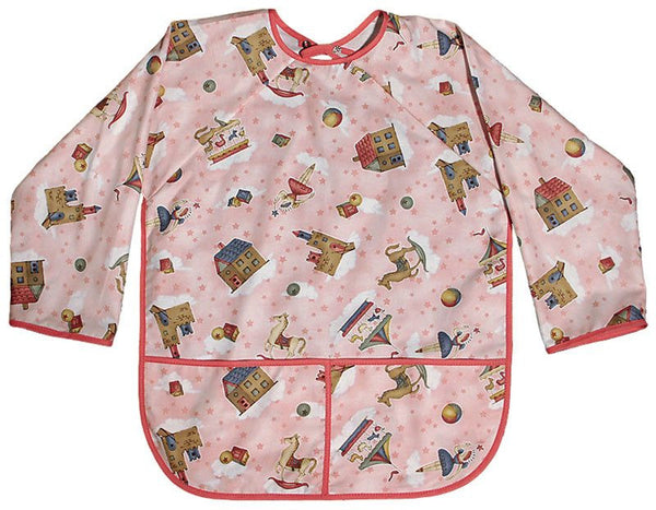 This is Raindrops 100% cotton princess printed art smock for all those budding artists, whose clothes are going to need some protection! The body is backed with water repellant nylon and there are two protects at the bottom to hold all of an artists supplies: brushes, tubes of paint, a towel, etc. The cotton sleeves can be rolled up or down ensuring full coverage and some longer wear. Only the body is nylon backed so the artist does not overheat during the creation process! This princess print is good for a girl and comes in a Pre-School, size 4-6 and in a Kindergarten, size 6-8. Check out the other available prints! Raindrops has been manufacturing top quality, unique garments in the USA, since 1936.