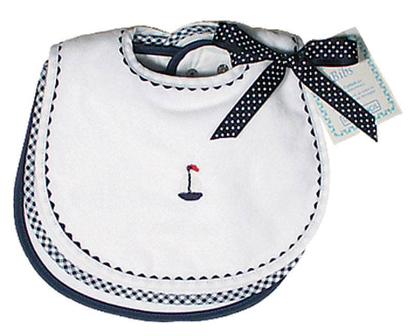 This Teething Bib Gift Set from Raindrops is a very practical and usable gift for any occasion! It includes three 100% cotton velour terry bibs backed with a water repellant backing, tied with a ribbon. The ric rac style on top has a crocheted sailboat, while the gingham trimmed bib and the red binding bib are plain, since a baby may be wearing these for a few hours each day, we did not want to distract from any clothing. Our 100% cotton velour terry will absorb all the big messes and constant drooling from a teething baby. There is no polyester in any of our velour terry, only cotton, and because of this, these top quality bibs will absorb and continue to wear and wash beautifully. This is a unisex set, but it is available in red and yellow versions, too! Raindrops has been manufacturing top quality, unique baby garments in the USA, since 1936.