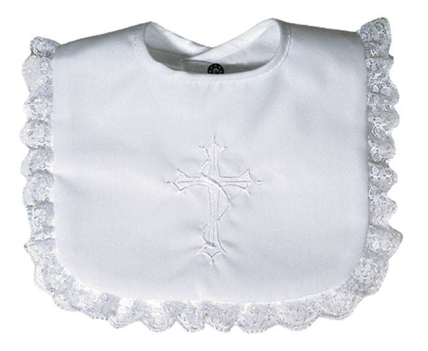 This is one of Raindrops best selling lace white cotton Christening bibs! It is embroidered with a beautiful, traditional cross and finished with a lace trim. This bib is for...