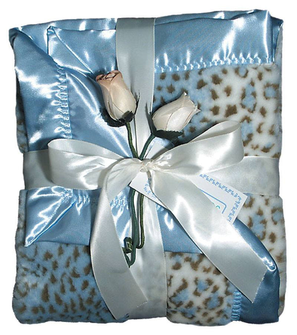 This is the ultimate in luxury faux fur baby blankets! Raindrops offers a faux lynx fur on one side, completely backed in blue satin. This receiving blanket is trimmed with...