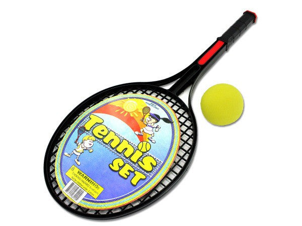 Fun for outside playtime, this 2-piece Tennis Racquet with Foam Ball Set can teach children some basic skills while keeping them safe. Plastic racquet and foam ball are sized for children and provide some authentic elements of a true tennis racquet and ball. For ages 3 and up. Comes packaged in a net bag.